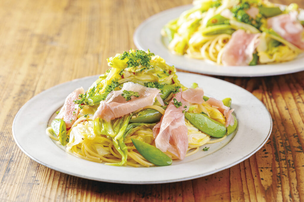旬の春キャベツがたっぷりのシンプルなパスタです。仕上げに生ハムを加えるとおしゃれ感もぐっと出る、この季節にぴったりの料理です。
