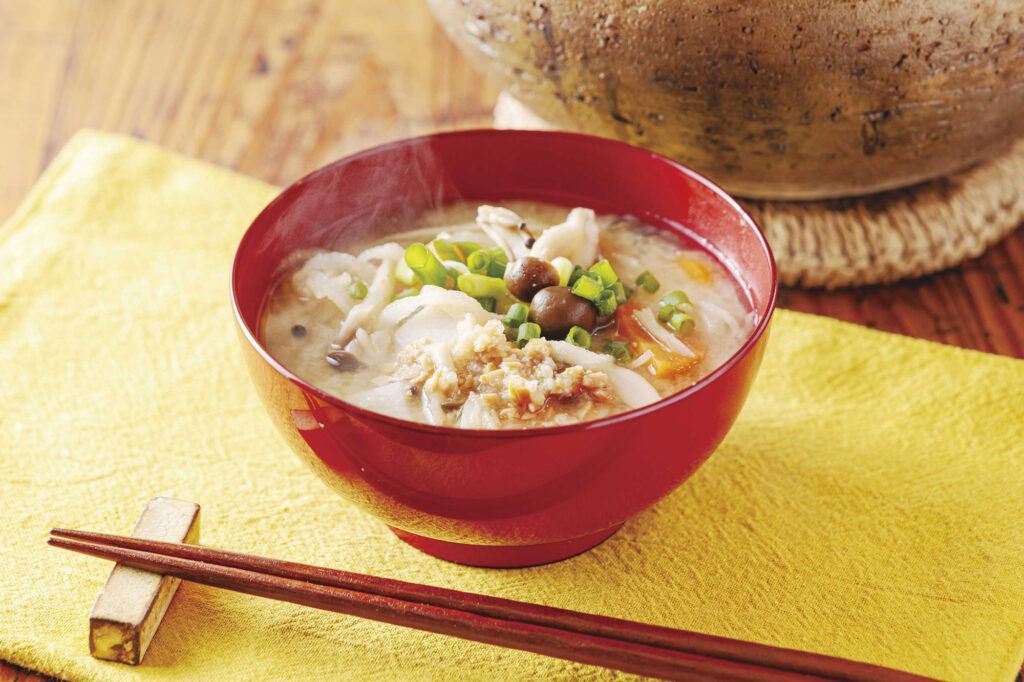 秋田県大仙市は宮崎市の有縁都市で、2025年に市制施行20 周年を迎えました。秋田の郷土料理「納豆汁」に、切干大根などの宮崎の素材を使うことで、コクとまろやかさが引きたちます。